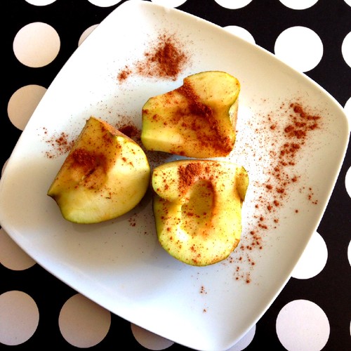 Enquanto aquecia a sopa de legumes, preparei o wrap (em breve dou a receita), e depois assei a maça no microondas. Estava tudo delicioso.