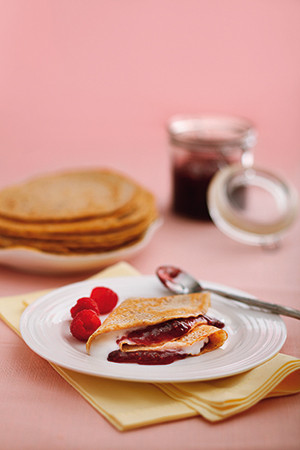 Estas panquecas são uma alternativa perfeita aos wraps e pães pita. São leves, mas forte o suficiente para segurar um pouco de recheio. As opções para o recheio são realmente infinitas: queijo creme, salmão, frango esfiado... A receita original é do Bill Granger, eu fiz pequenas alterações de forma a ser mais saudável.